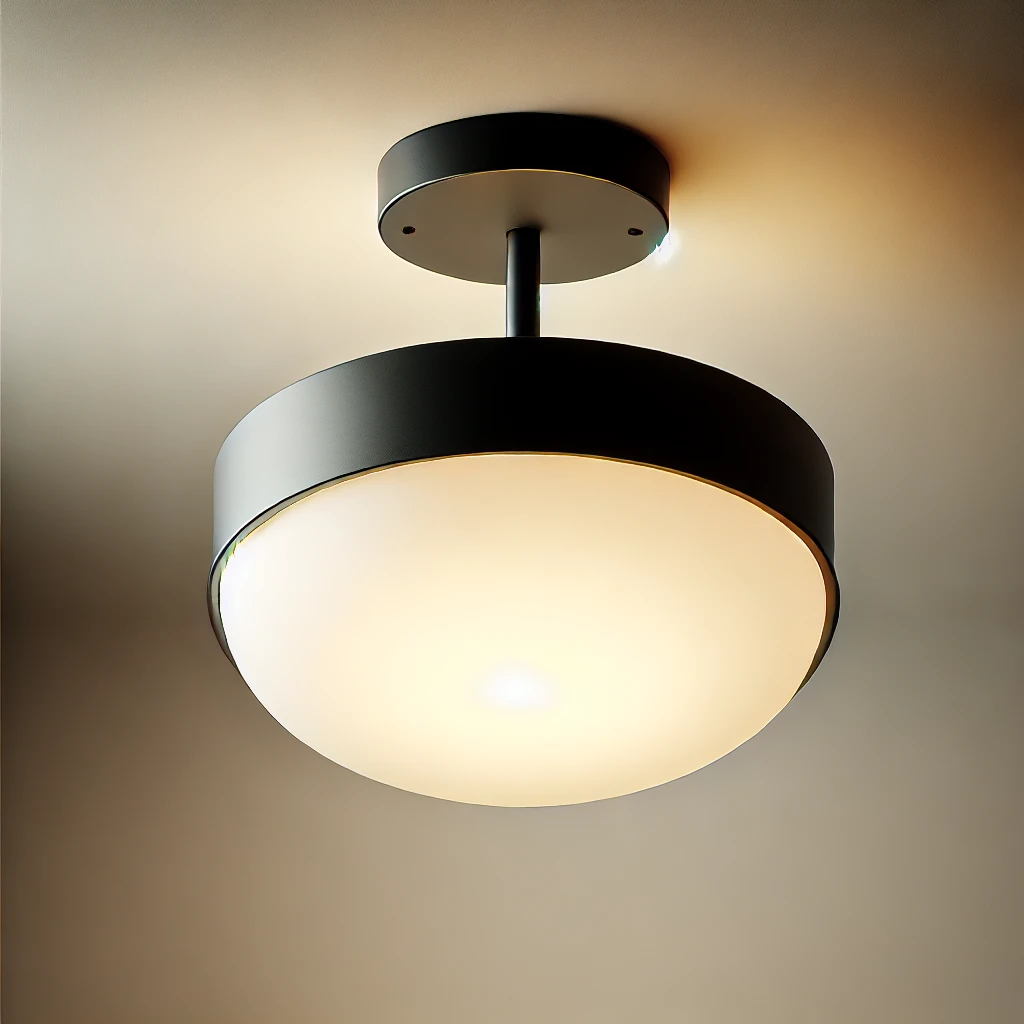 La Lámpara de Techo SkyGlow combina un diseño limpio y moderno con funcionalidad, ideal para cualquier espacio contemporáneo. Su base circular en acabado negro mate aporta un toque elegante y discreto, mientras que la pantalla de vidrio esmerilado suaviza la luz, creando una atmósfera cálida y acogedora.